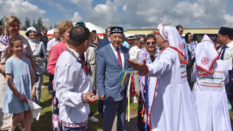 Прибыв на городской майдан, Фарид Мухаметшин в сопровождении главы Елабужского муниципального района Рустема Нуриева осмотрел выставку техники, тракторов и машин, продукции местного производства. Во время посещения шатров компании "Махеев" и Елабужского государственного музея-заповедника гости обратили внимание на царящую вокруг атмосферу дружбы и согласия между людьми разных национальностей. В татарской, русской, кряшенской и марийской избах руководителю республиканского парламента показали национальные обряды, елабужские творческие коллективы исполнили народные песни и танцы.