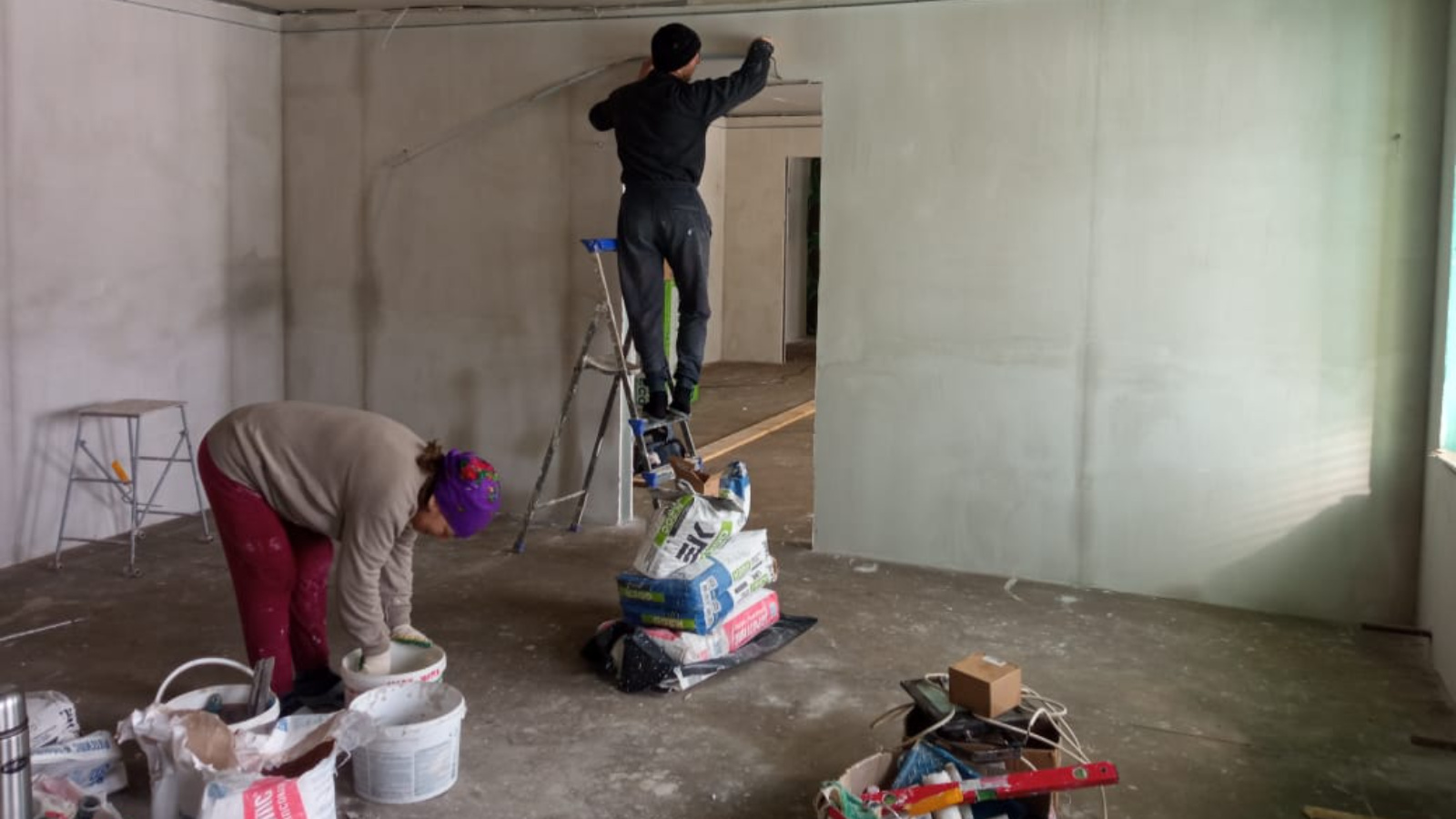 Мичанском сельском поселении продолжается капитальный ремонт ПМК - 159 в детском саду "Березка" в селе Новый Мичан. В настоящее время с внутренней стороны стены обшивают гипсокартоном. В готовых частях выполняются штукатурные малярные работы. На подвесной потолок возводятся каркасы. На кухонные перегородки наклеивается плитка.