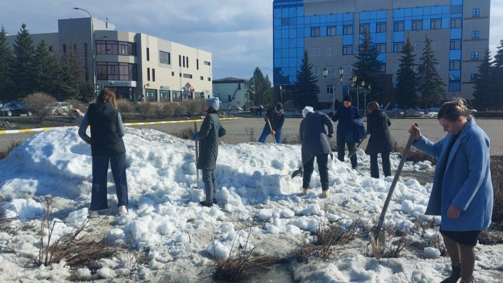 Работники Исполнительного комитета района и Управления сельского хозяйства и продовольствия организовали субботник на центральной площади города.