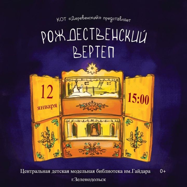 В воскресенье в гости в библиотеку имени А. П. Гайдара приедет казанское творческое объединение «Деревенский» Рождественская мистерия с кукольными персонажами и народной музыкой ожидает зрителей 12 января в 15.00.