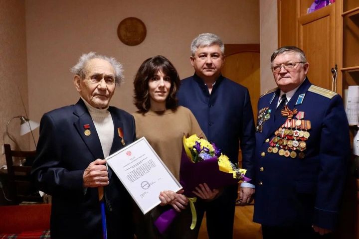 Глава Зеленодольского района передал ветеранам также Указ Президента России о присвоении Зеленодольску звания «Город трудовой доблести» Ветеран Великой Отечественной войны Михаил Федорович Балахонов , 98 лет.