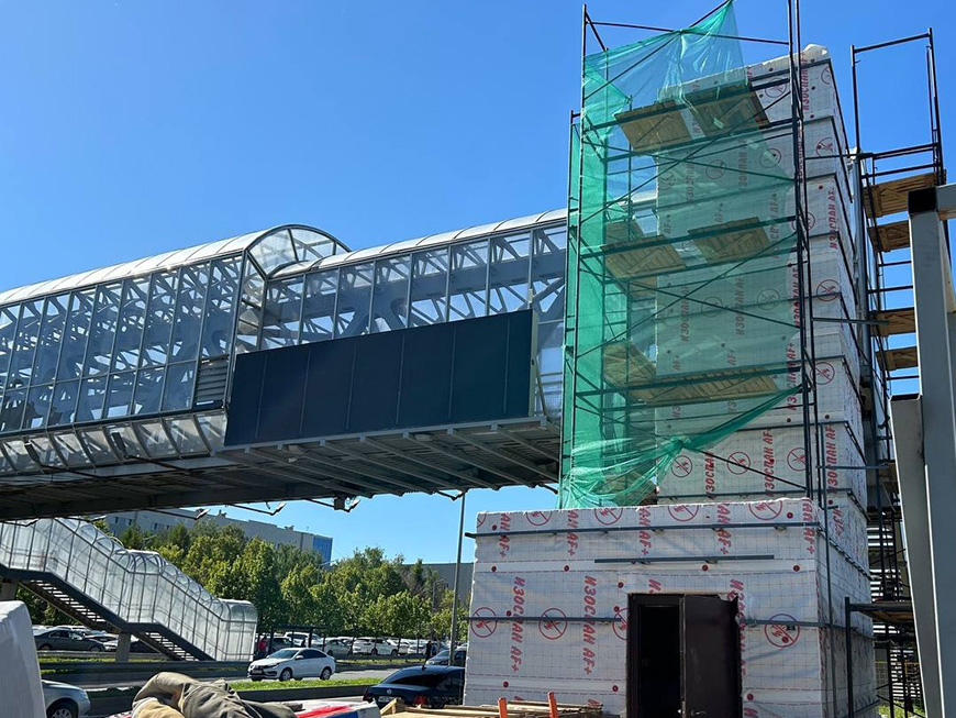 Подъемное оборудование на ул.Павлюхина смонтировали на 20%. Строители переходят от конструктивных работ к обшивке и отделке. На объекте появятся не два лифта, как в других переходах, а три.