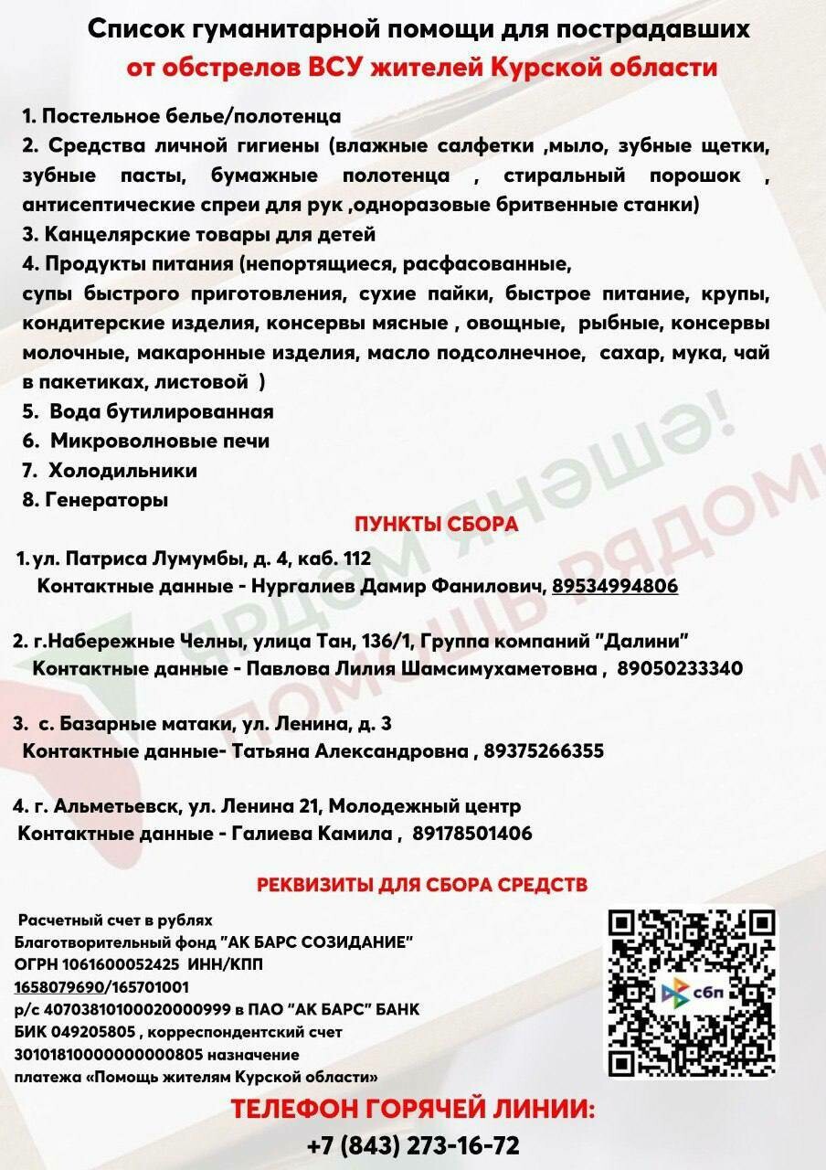 Поддержка жителей Курской области от татарстанцев