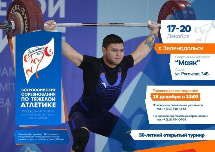 Зеленодольск готовится стать ареной битвы титанов! С 17 по 20 декабря спортивный комплекс «Маяк» примет Всероссийские соревнования по тяжелой атлетике «Памяти Олимпийского чемпиона Курынова», где сильнейшие атлеты России сразятся за звание лучших