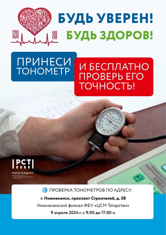 Тонометр, который сейчас есть в каждой семье, — это лучший пример для этого, ведь с его помощью мы следим за состоянием своего здоровья. В дни акции специалисты ФБУ «ЦСМ Татарстан» на безвозмездной основе будут вести прием граждан для проведения контроля выходных параметров бытовых тонометров артериального давления, используемых населением. По итогам проверки оборудования, метрологи дадут не только заключение о показаниях тонометра, но и советы по устранению неисправности.